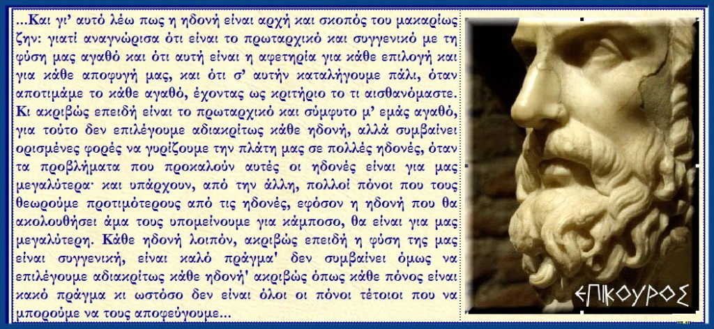 - Η ηδονή, αρχή βασική στη φιλοσοφία του Επίκουρου που γίνεται όπλο στα χέρια των εχθρών του