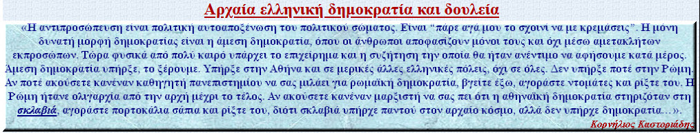 - Το ζήτημα της δουλείας στην αρχαία Αθήνα κατά τον Κ. Καστοριάδη