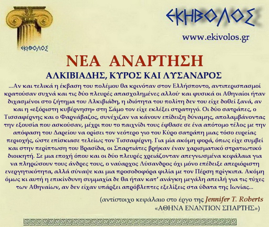 http://www.ekivolos.gr/Alkibiadhs,%20Kyros%20kai%20Lysandros.htm Βαθμολογία:Κοινοποιήστε: Πατήστε για κοινοποίηση στο Facebook(Ανοίγει σε νέο παράθυρο) Facebook Κάνε κλικ για να μοιραστείς στο X(Ανοίγει σε νέο παράθυρο) Χ Κλικ για αποστολή ενός συνδέσμου μέσω email σε έναν/μία φίλο/η(Ανοίγει σε νέο παράθυρο) Email Κλικ για εκτύπωση(Ανοίγει σε νέο παράθυρο) Εκτύπωση Μου αρέσει! Φόρτωση... Σχετικά Δημοσιεύθηκε από ΕΚΗΒΟΛΟΣ Δείτε όλα τα άρθρα του/της ΕΚΗΒΟΛΟΣ