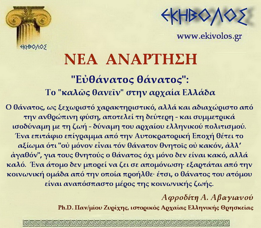 «Εὐθάνατος θάνατος»: Το «καλῶς ζῆν» στην αρχαία Ελλάδα http://www.ekivolos.gr/Efthanatos%20thanatos.htm Βαθμολογία:Κοινοποιήστε: Πατήστε για κοινοποίηση στο Facebook(Ανοίγει σε νέο παράθυρο) Facebook Κάνε κλικ για να μοιραστείς στο X(Ανοίγει σε νέο παράθυρο) Χ Κλικ για αποστολή ενός συνδέσμου μέσω email σε έναν/μία φίλο/η(Ανοίγει σε νέο παράθυρο) Email Κλικ για εκτύπωση(Ανοίγει σε νέο παράθυρο) Εκτύπωση Μου αρέσει! Φόρτωση... Σχετικά Δημοσιεύθηκε από ΕΚΗΒΟΛΟΣ Δείτε όλα τα άρθρα του/της ΕΚΗΒΟΛΟΣ