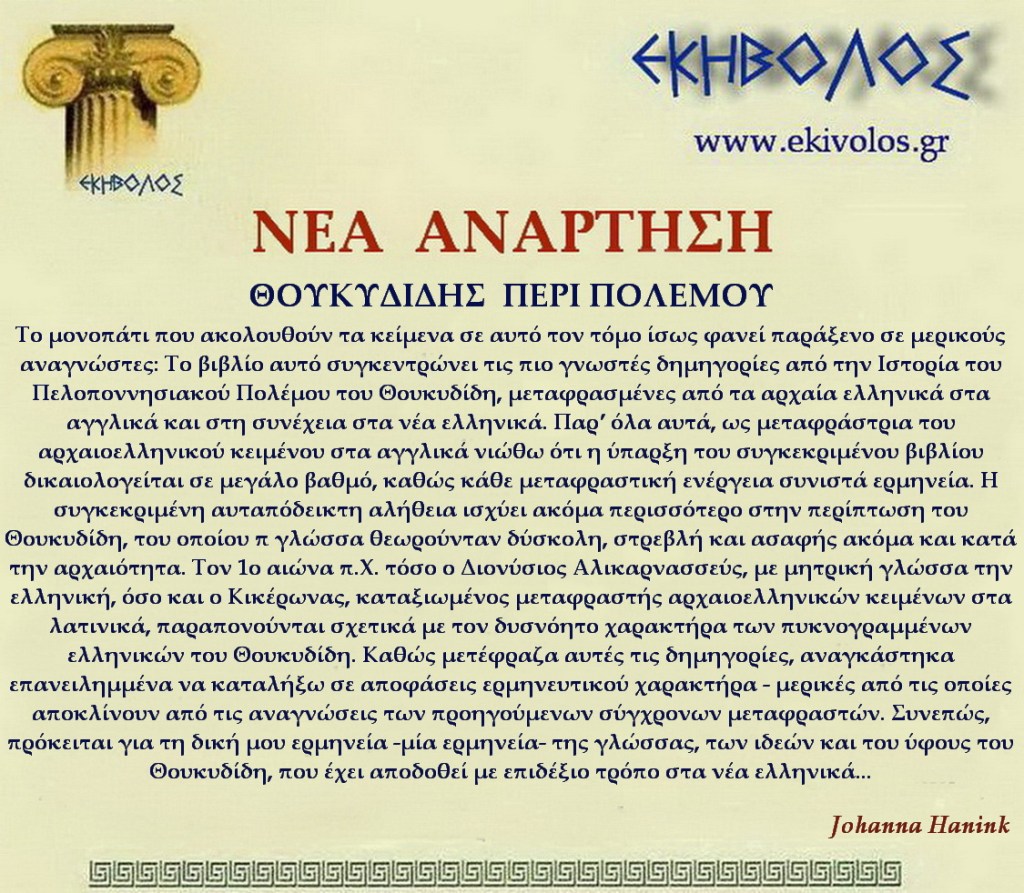 ΘΟΥΚΥΔΙΔΗΣ – ΠΕΡΙ ΠΟΛΕΜΟΥ http://www.ekivolos.gr/Thoukydidhs,%20peri%20polemou.htm Βαθμολογία:Κοινοποιήστε: Πατήστε για κοινοποίηση στο Facebook(Ανοίγει σε νέο παράθυρο) Facebook Κάνε κλικ για να μοιραστείς στο X(Ανοίγει σε νέο παράθυρο) Χ Κλικ για αποστολή ενός συνδέσμου μέσω email σε έναν/μία φίλο/η(Ανοίγει σε νέο παράθυρο) Email Κλικ για εκτύπωση(Ανοίγει σε νέο παράθυρο) Εκτύπωση Μου αρέσει! Φόρτωση... Σχετικά Δημοσιεύθηκε από ΕΚΗΒΟΛΟΣ Δείτε όλα τα άρθρα του/της ΕΚΗΒΟΛΟΣ
