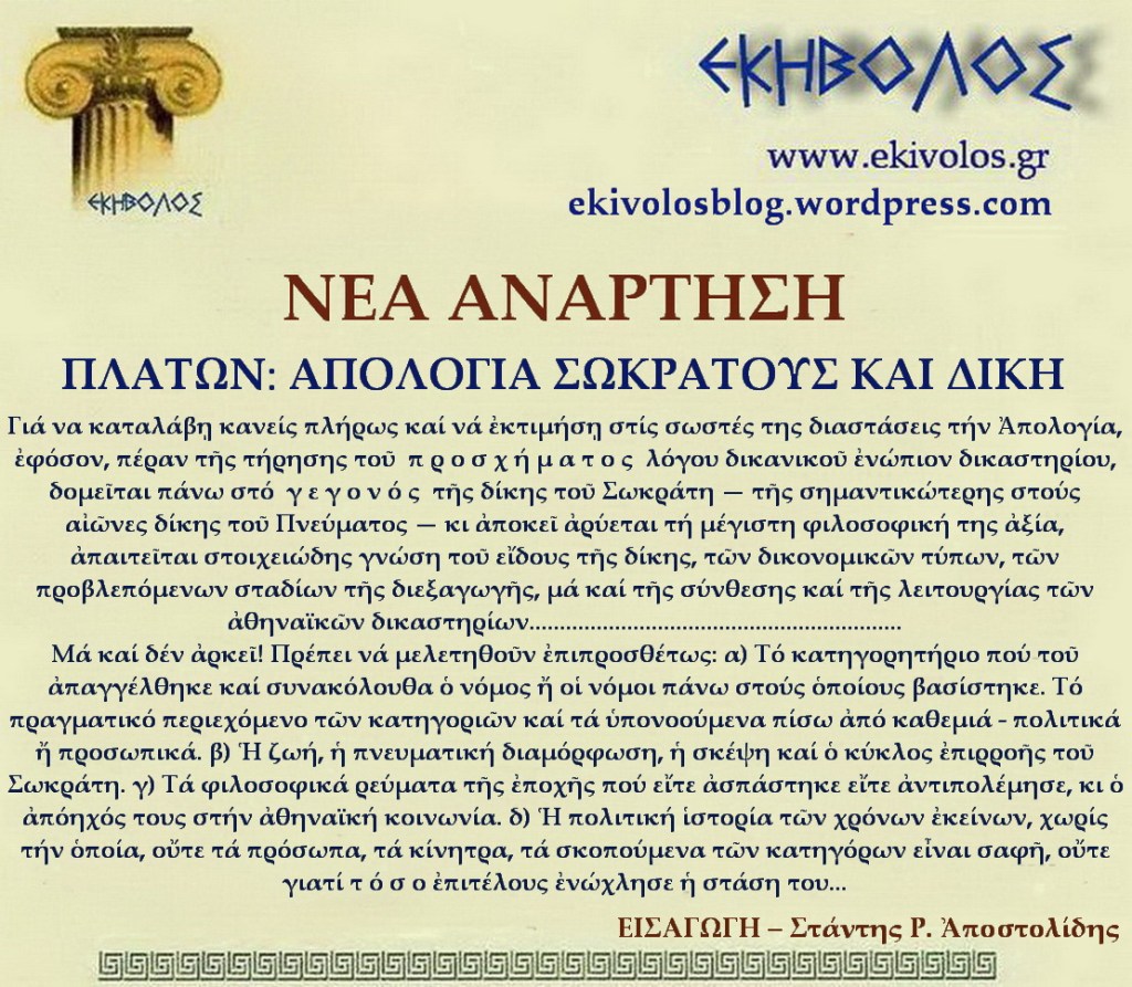 Ἀπολογία Σωκράτους και δίκη ολόκληρο το αρχείο-pdf Βαθμολογία:Κοινοποιήστε: Πατήστε για κοινοποίηση στο Facebook(Ανοίγει σε νέο παράθυρο) Facebook Κάνε κλικ για να μοιραστείς στο X(Ανοίγει σε νέο παράθυρο) Χ Κλικ για αποστολή ενός συνδέσμου μέσω email σε έναν/μία φίλο/η(Ανοίγει σε νέο παράθυρο) Email Κλικ για εκτύπωση(Ανοίγει σε νέο παράθυρο) Εκτύπωση Μου αρέσει! Φόρτωση... Σχετικά Δημοσιεύθηκε από ΕΚΗΒΟΛΟΣ Δείτε όλα τα άρθρα του/της ΕΚΗΒΟΛΟΣ