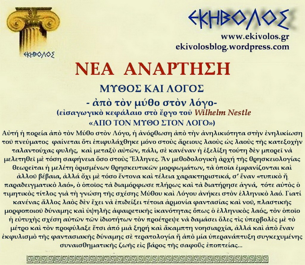 Μύθος καὶ Λόγος ολόκληρο το αρχείο-pdf Βαθμολογία:Κοινοποιήστε: Mοιραστείτε στο Facebook(Ανοίγει σε νέο παράθυρο) Facebook Μοιραστείτε στο X(Ανοίγει σε νέο παράθυρο) Χ Στείλε ένα σύνδεσμο σε έναν φίλο(Ανοίγει σε νέο παράθυρο) Email Εκτύπωση(Ανοίγει σε νέο παράθυρο) Εκτύπωση Μου αρέσει! Φόρτωση... Σχετικά Δημοσιεύθηκε από ΕΚΗΒΟΛΟΣ Δείτε όλα τα άρθρα του/της ΕΚΗΒΟΛΟΣ