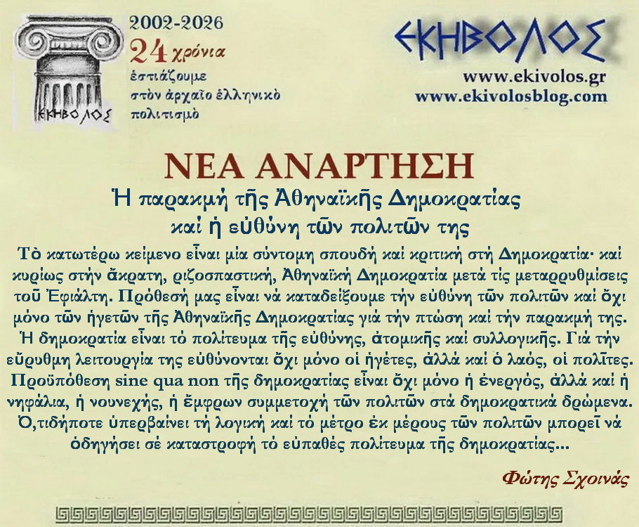 Ἡ παρακμή τῆς Ἀθηναϊκῆς Δημοκρατίας καί ἡ εὐθύνη τῶν πολιτῶν της ολόκληρο το αρχείο-pdf Βαθμολογία:Κοινοποιήστε: Mοιραστείτε στο Facebook(Ανοίγει σε νέο παράθυρο) Facebook Μοιραστείτε στο X(Ανοίγει σε νέο παράθυρο) Χ Στείλε ένα σύνδεσμο σε έναν φίλο(Ανοίγει σε νέο παράθυρο) Email Εκτύπωση(Ανοίγει σε νέο παράθυρο) Εκτύπωση Μου αρέσει! Φόρτωση... Σχετικά Δημοσιεύθηκε από ΕΚΗΒΟΛΟΣ Δείτε όλα τα άρθρα του/της ΕΚΗΒΟΛΟΣ