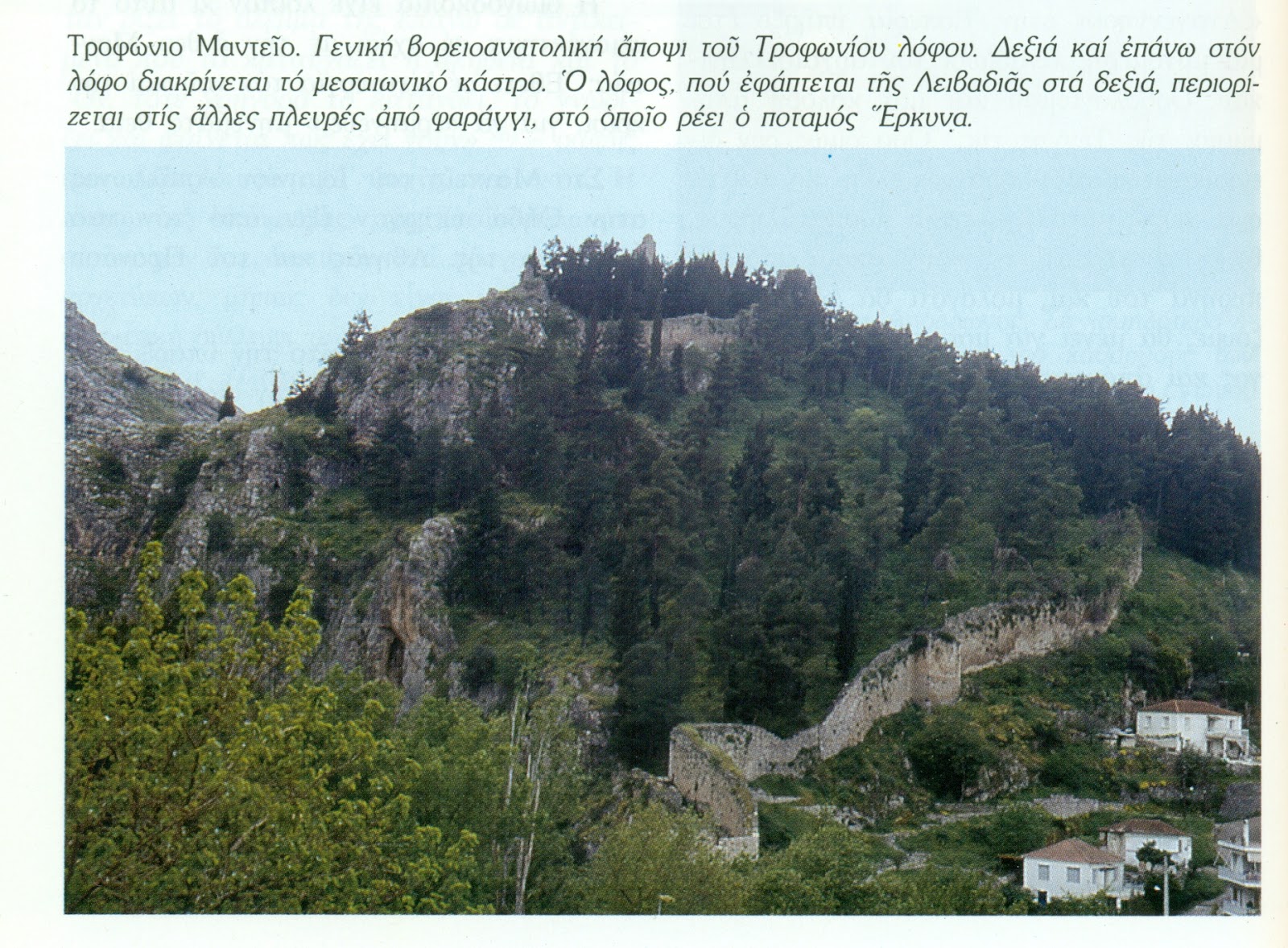 Τὸ Τροφώνιο ὑπῆρξε ἕνα ἰδιόμορφο ἡρωομαντεῖο, ἀφοῦ ὁ χρηστηριαζόμενος δὲν ὑποβαλλόταν σὲ ἐγκοίμησι, ἀλλά, περιερχόμενος σὲ ἔκστασι, ἄκουγε τὴν ἴδια τὴ φωνὴ τοῦ πνεύματος νὰ τοῦ ὁμιλεῖ. Γι’αὐτὸ τὸ Τροφώνιο ἐθεωρεῖτο «αὐτὸφωνο Μαντεῖο». Τὸ μαντεῖο αὐτὸ εὑρισκόταν ἐπάνω σ’ἕναν ἀπόκρημνο, πυκνὰ δασωμένο λόφο κοντὰ στὴ Λειβαδιά, δίπλα στὶς πηγὲς τῆς Ἕρκυνας (τοῦ ποταμοῦ ποὺ διασχίζει τὴν πόλη), καὶ ἦταν ὑπόγειο. Τὴν ὕπαρξη αὐτοῦ τοῦ μαντείου εἶχαν ὑποδείξει κάποτε οἱ Δελφοὶ σ’ἕναν χρηστηριαζόμενο, ὁ ὁποῖος, ἐρευνῶντας τὸν λόφο αὐτὸν τῆς Βοιωτίας, ἐντόπισε σμῆνος μελισσῶν νὰ εἰσέρχεται σὲ μιὰ γήινη ὀπή. Ἦταν ἡ ὀπή, ὅπου κατὰ τὸν δελφικὸ χρησμό, εἶχε εἰσέλθει καὶ εἶχε ἀποβιώσει ὁ Τροφώνιος, ὁ κτήτωρ τοῦ πρώτου ναοῦ τῶν Δελφῶν. Ἀπὸ τότε τὸ Τροφώνιο Μαντεῖο ἔγινε διάσημο καὶ ἐθεωρεῖτο στὴν ἀρχαία Ἑλλάδα ἱερώτατο.Ὁ ἐπιθυμῶν νὰ χρηστηριασθῆ στὸ Τροφώνιο, ἀφοῦ ὑποβαλλόταν σὲ μακρὰ προπαρασκευὴ καὶ ἔπινε νερὸ ἀπὸ τὴν πηγὴ τῆς Λήθης (γιὰ νὰ ξεχάσει ὅσα τὸν ἐβάραιναν) καὶ τὴν πηγὴ τῆς Μνημοσύνης (γιὰ νὰ θυμᾶται ὅσα θὰ ἀκούσει στὸ Μαντεῖο), ὁδηγεῖτο σ’ ἕναν κυκλικὸ λάκκο, σὰν ἁλώνι, βάθους 4 μέτρων. Αὐτὸς ὁ λάκκος ἔφερε τὸ ὄνομα τοῦ Ἀγαμήδη ἀδελφοῦ τοῦ Τροφωνίου –μαζὶ εἶχαν κτίσει τὸν δελφικὸ ναό. Στὴ βάση τοῦ λάκκου ξεκινοῦσε ἡ μικρὴ ὀπὴ τῆς γῆς: Ἐκεῖ διολίσθαινε ἕρποντας κανεὶς γιὰ νὰ μπεῖ, καὶ προχωροῦσε κατόπιν βαθειά, σὲ ἀπόσταση 30 περίπου μέτρων, πρὸς ἕνα μεγάλο ὑπόγειο χῶρο. Ἡ παραμονὴ στὰ σκοτεινὰ αὐτὰ βάθη, διαρκοῦσε ἐπὶ πολλὲς ὧρες, ἐνίοτε καὶ ἡμέρες. Ὑπὸ τὴν ἐπήρεια ἴσως καὶ κάποιας γήινης ὀμφῆς ἐρχόταν ὁ χρηστηριαζόμενος σὲ ψυχικὴ ὑπερδιέγερση καὶ αἰσθανόταν τὴν παρουσία τοῦ πνεύματος νὰ τοῦ ὁμιλεῖ. Μετὰ τὴν ἔξοδό του ἀπὸ τὸ Μαντεῖο καθόταν σὲ εἰδικὸ χῶρο μαζὶ μὲ ἱερεῖς, γιὰ νὰ συνέλθει καὶ νὰ τοὺς διηγηθεῖ τὰ βιώματά του. Αὐτὰ δὲ τὰ βιώματα πρέπει νὰ ἦσαν τόσο συγκλονιστικά, ὥστε οἱ χρηστηριασθέντες συχνὰ ἔμεναν ἐπὶ πολὺν καιρὸ σοβαροὶ κι ἀγέλαστοι. Τὰ διατρέξαντα μέσα στὸ Τροφώνιο δὲν ἐπιτρεπόταν ὅμως νὰ τὰ διηγηθοῦν σὲ τρίτους.