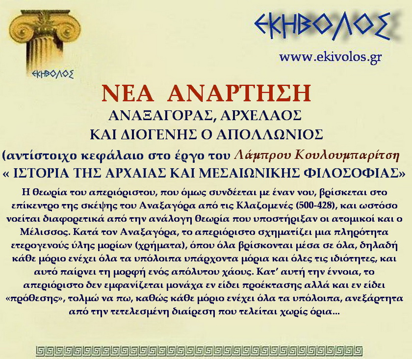 ΑΝΑΞΑΓΟΡΑΣ, ΑΡΧΕΛΑΟΣ ΚΑΙ ΔΙΟΓΕΝΗΣ Ο ΑΠΟΛΛΩΝΙΟΣ http://www.ekivolos.gr/Anaxagoras,%20Arxelaos%20kai%20Diog;enhs%20o%20Apollwnios.htm Βαθμολογία:Κοινοποιήστε: Πατήστε για κοινοποίηση στο Facebook(Ανοίγει σε νέο παράθυρο) Facebook Κάνε κλικ για να μοιραστείς στο X(Ανοίγει σε νέο παράθυρο) Χ Κλικ για αποστολή ενός συνδέσμου μέσω email σε έναν/μία φίλο/η(Ανοίγει σε νέο παράθυρο) Email Κλικ για εκτύπωση(Ανοίγει σε νέο παράθυρο) Εκτύπωση Μου αρέσει! Φόρτωση...